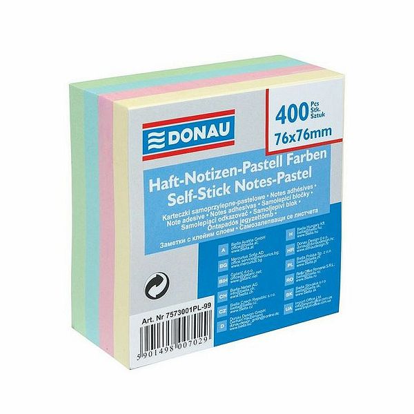 Blok samoljepljivi Donua 76x76mm 400L 4 pastel boje 27366
