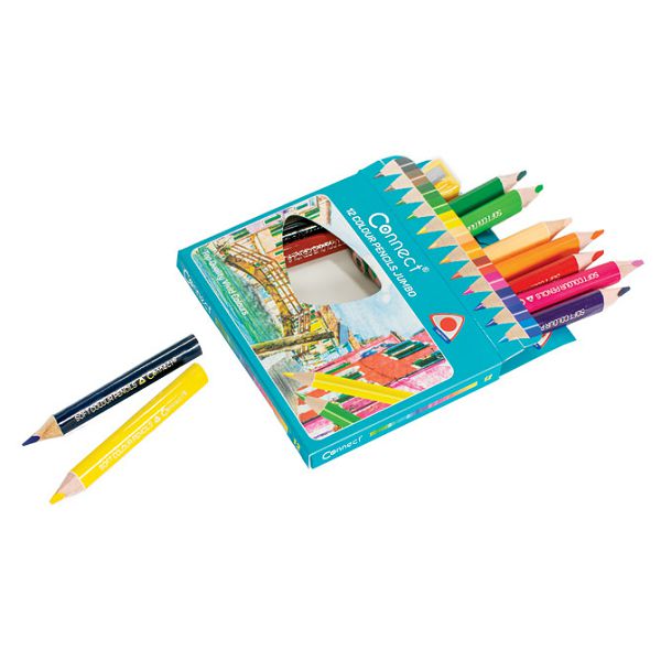 Boje drvene 12boja kratke Jumbo trokutaste+šiljilo Connect blister