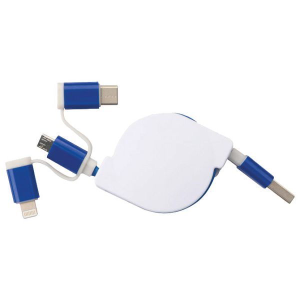 Kabel za punjenje uvlačni USB sa 3 konektora Macma 2165204 plavi