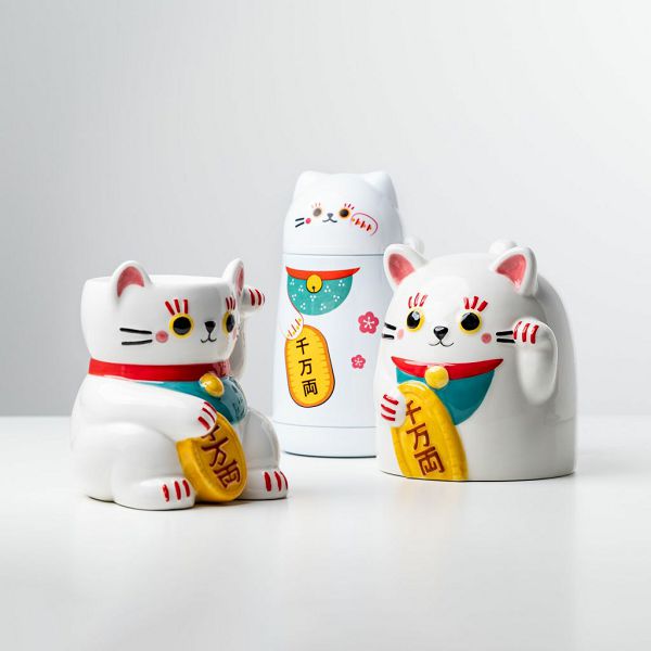 Keramička šalica Puckator u obliku bijele Maneki Neko mačke za sreću 450 ml MUG381