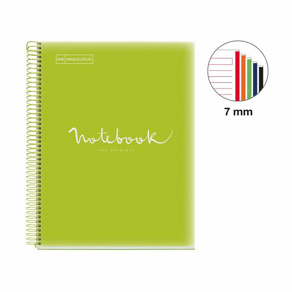 Kolegij blok Miquelrius A4 90g 120L spiralni crte Emotions Lime MR49940