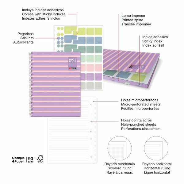 Unutrašnjost: Crte, 80 listova, 90 g/m2, extra neprozirni papir, mikroperforacija