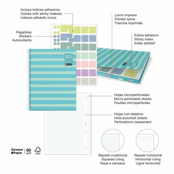 Unutrašnjost: Kocke, 80 listova, 90 g/m2, extra neprozirni papir, mikroperforacija