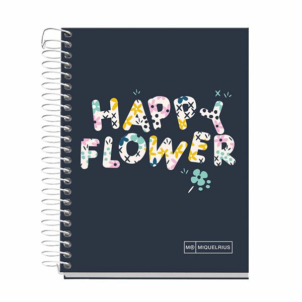 Kolegij blok Miquelrius A6 70g 120L spiralni crte happy flower crna MR4333