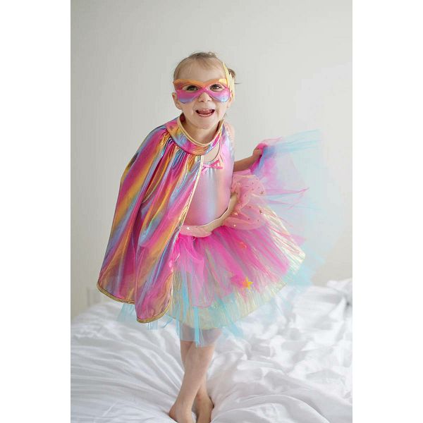 KOSTIM SUPER-DUPER TUTU suknja +ogrtač + maska,ružičasto/zlatna,vel.4-6 god Great Pretenders