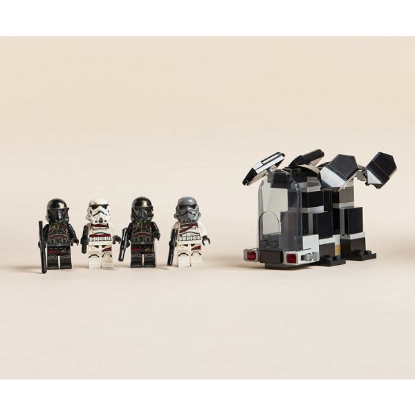 Super mali poklon za dječake, djevojčice i sve obožavatelje u dobi od 6 godina i više, set uključuje igračku za izgradnju broda za slijetanje s prostorom za 4 LEGO minifigure u stražnjem dijelu, 2 izstrelitelja i LEGO kokpit za minifigure s odvojivim krovom. 4 uključene LEGO Star Wars minifigure - 2 Death Troopera i 2 Night Troopera - imaju blaster koji se može pričvrstiti pored njih u stražnjem dijelu broda za slijetanje, spremne za bitke pretvaranja.