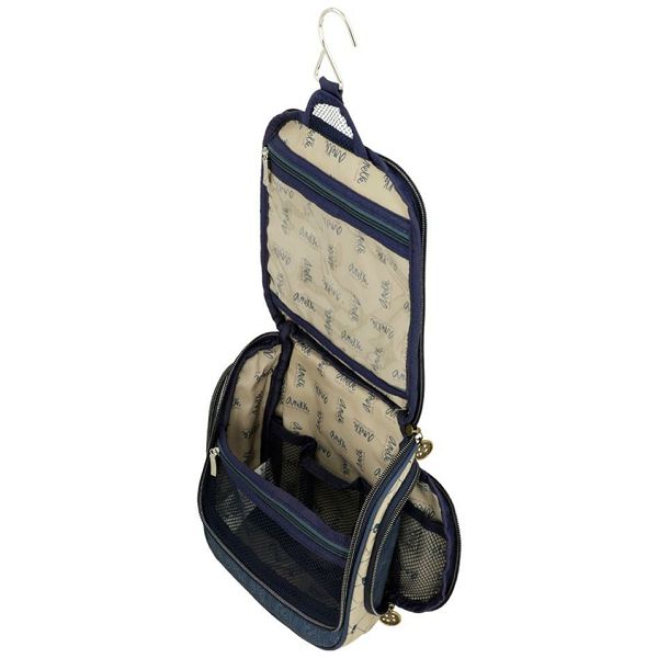 Torba za pranje rublja zatvara se patentnim zatvaračem u obliku slova U. Otvaranjem otkriva se pametno dizajnirana unutrašnjost s kukama za vješanje na vrata ili zidove. Sve ima svoje mjesto. Gel za tuširanje, četkica za zube, krema i ostali toaletni pribor mogu se ovdje pohraniti ne samo praktično, već i na posebno elegantan način.