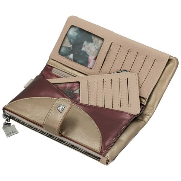 Ugodna, decentna paleta boja čini ovaj novčanik savršenim suputnikom za mlade i stare. Njegova vanjština impresionira čistim linijama i modernim izgledom, dok unutrašnjost blista od ugodnih iznenađenja. Šarmantna interakcija metalik bordo i brončane boje, zajedno s visokokvalitetnom tekstilnom podstavom koja odražava grafički uzorak kolekcije, upotpunjuje izgled.