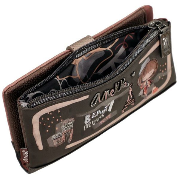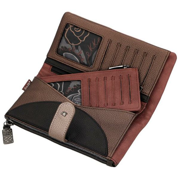 Ovaj fleksibilni dugi novčanik iz Anekkeine kolekcije Mademoiselle kombinira funkcionalnost s francuskom elegancijom. Skladna kombinacija boja tople smeđe i nježne prašnjavo ružičaste daje mu bezvremenski šarm.