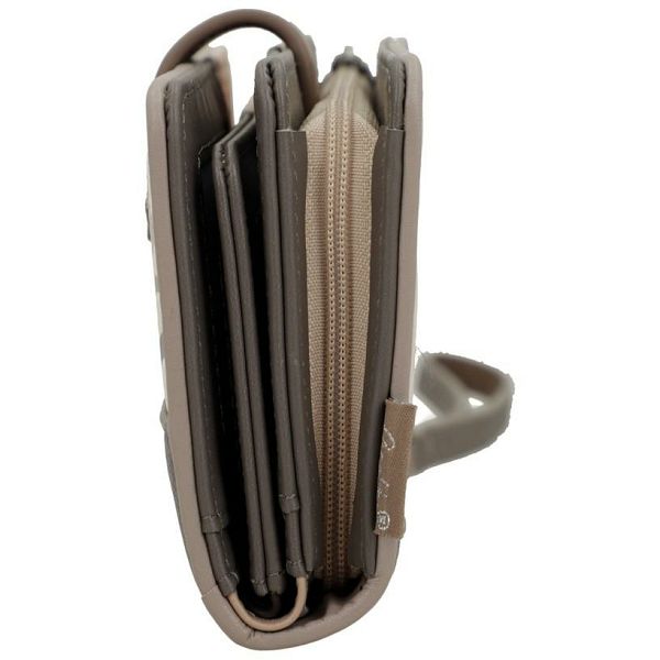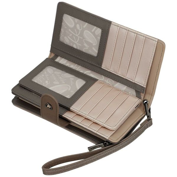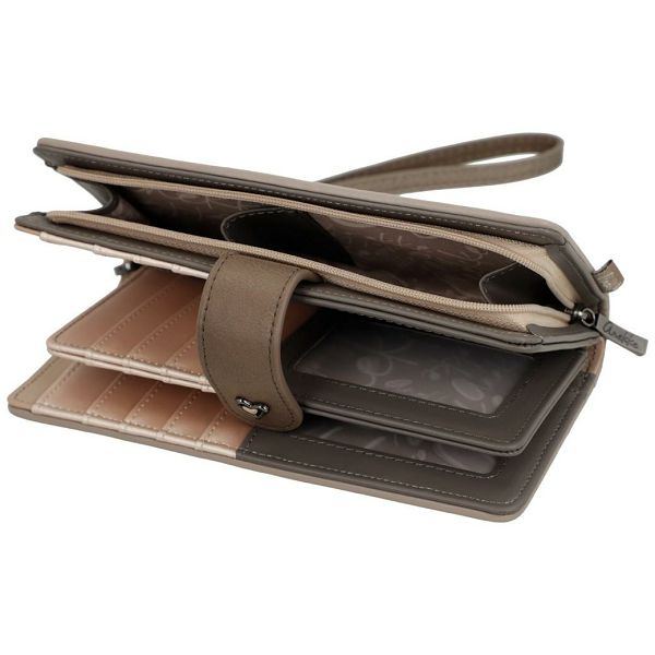 Unutrašnjost ovog ženskog novčanika impresionira obiljem prostora za kartice, račune i ostale potrepštine. Savršeno organiziran i ugodno pregledan, zahvaljujući svijetloj tekstilnoj podstavi. Metalik tonovi također pružaju upečatljiv i sofisticiran kontrast.