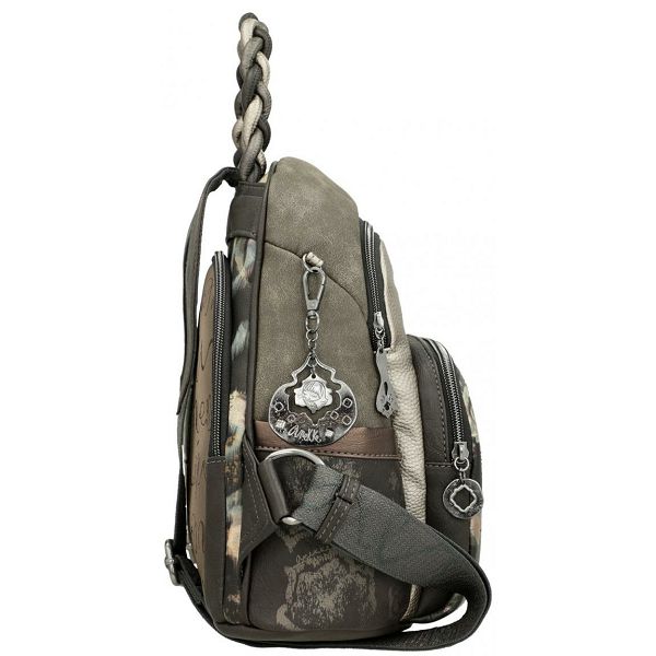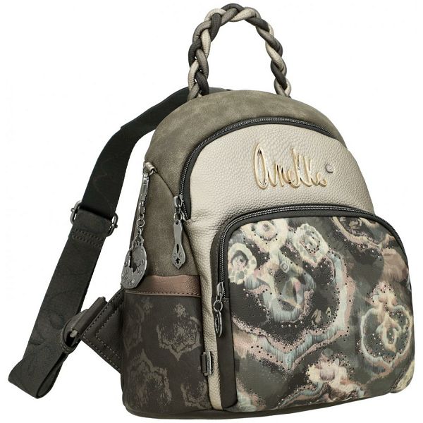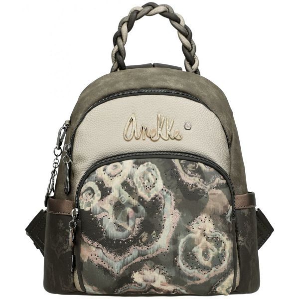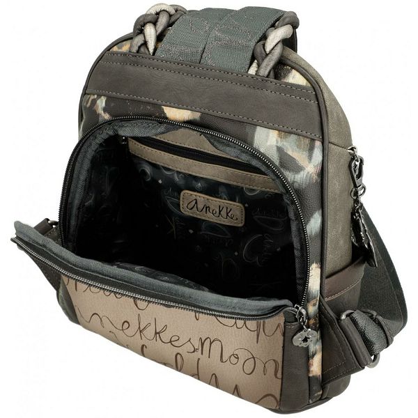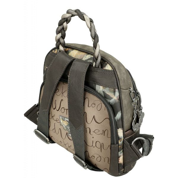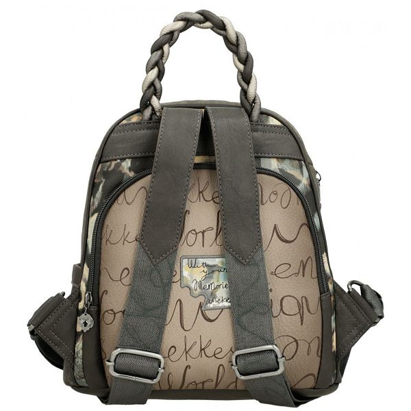 Stražnja strana gradskog ruksaka je relativno jednostavna, u taupe boji s printom.