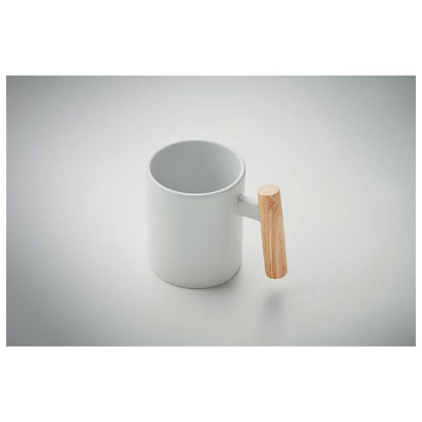 Šalica keramička 320ml Crenate sa drvenom drškom bijela