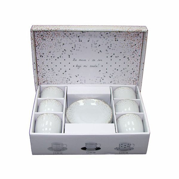 ŠALICE za kavu SET 180ml 6/1, s tanjurićima, zlatna linija i točkice 110669