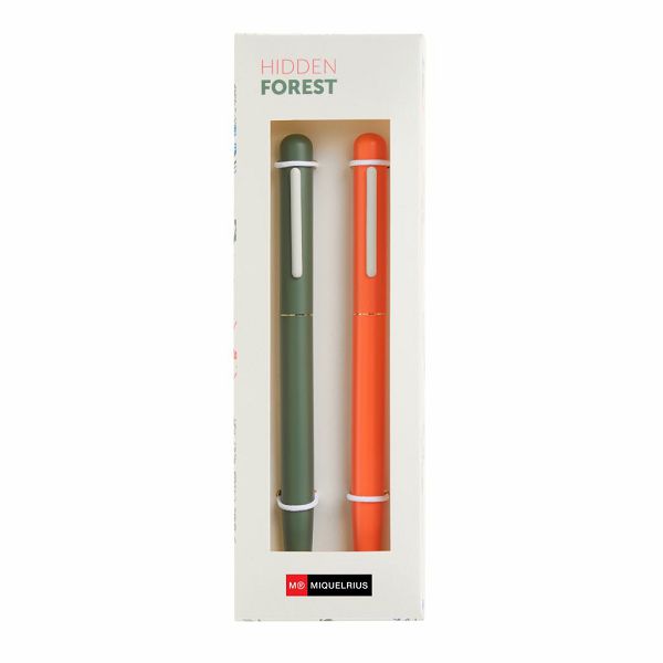 Set kemijskih olovaka Miquelrius Hidden Forest metalna plavi ispis Zelena i narančasta 2/1 MR12030