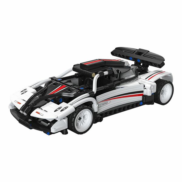 STEM Pull back trkaći auto KAZOO C52022W, 1:18, crno-bijeli, 321 dijelova