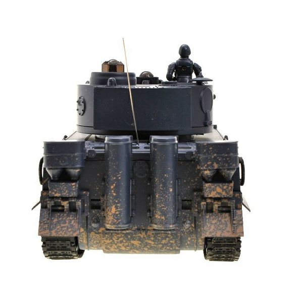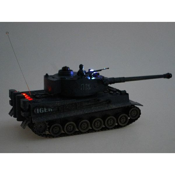 BOJNI TENK TIGER 103 1/28 u grafitnoj kamuflaži s gumenim trakama izgleda sjajno čak i u stvarnom životu. Rotirajuća kupola može se okretati 180 stupnjeva u svakom smjeru, što u praksi znači mogućnost vođenja vatre u rasponu od 360 stupnjeva. Tenk je opremljen učinkovitom rasvjetom, koja će se posebno isticati u tamnijoj prostoriji. Vozilo ima otvor na kupoli, u koji se mogu smjestiti pričvršćeni tanker i mitraljez. Tenk se napaja pričvršćenom baterijom, što značajno smanjuje operativne troškove. Vozi se naprijed, nazad i okreće desno, lijevo.
