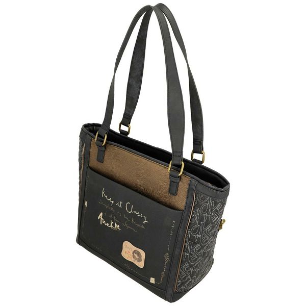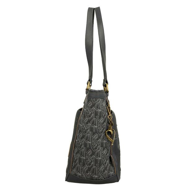Sjajni vez logotipa krasi bočne panele. Sofisticirani kontrast stvaraju brončani umeci na prednjoj i stražnjoj strani torbice.