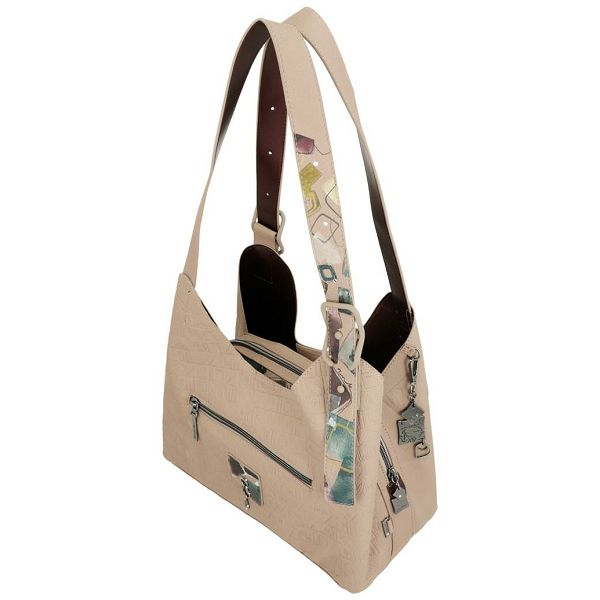 Svijetlo sivo-bež boja, u kombinaciji s decentno reljefnom površinom, daje ovoj ženskoj torbi bezvremensku, decentnu eleganciju koja se bez napora uklapa u svaki izgled. Ali prava čarolija leži u detaljima: tiskane ručke s upečatljivim motivom stvaraju elegantan kontrast i čine ovu torbu pravim privlačem za poglede. Njihova podesiva duljina omogućuje prilagođeno pristajanje. Fleksibilna kao sam život.