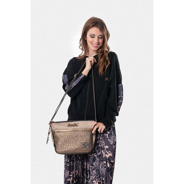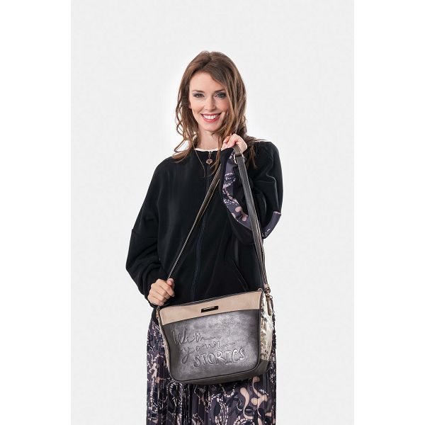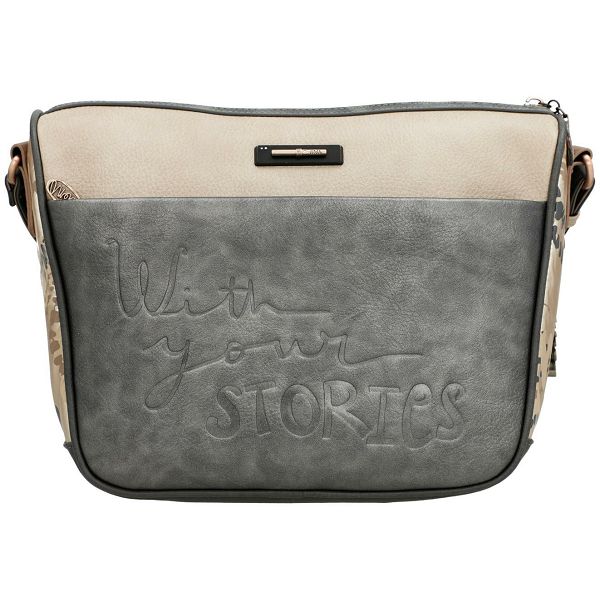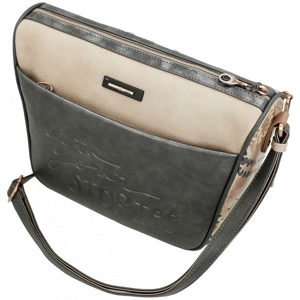 Ova crossover torba iz linije Intentions impresionira uzbudljivom mješavinom materijala. Teksturirana umjetna koža u bež, antracit i zlatnoj boji kombinirana je s gustom najlonskom tkaninom kako bi se stvorio jedinstveni dizajn koji ne žrtvuje svoj karakteristični šarm.