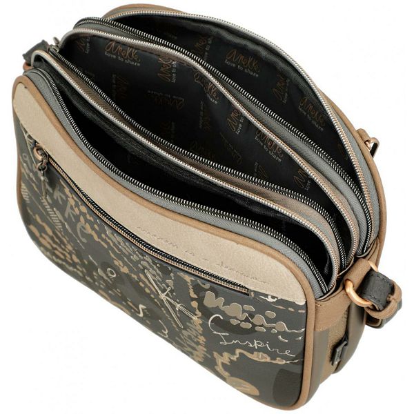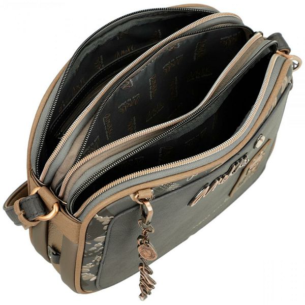 Tri glavna pretinca torbice imaju zasebno zatvaranje patentnim zatvaračem. Unutrašnjost torbice preko ramena podstavljena je odgovarajućom tkaninom.