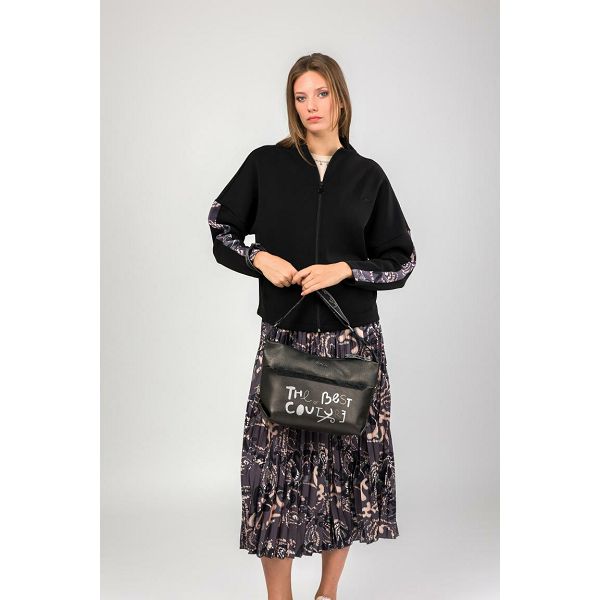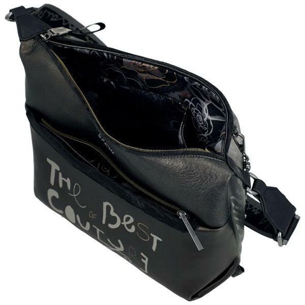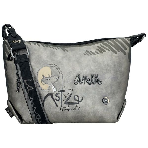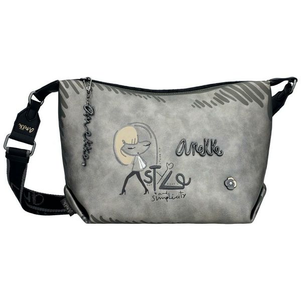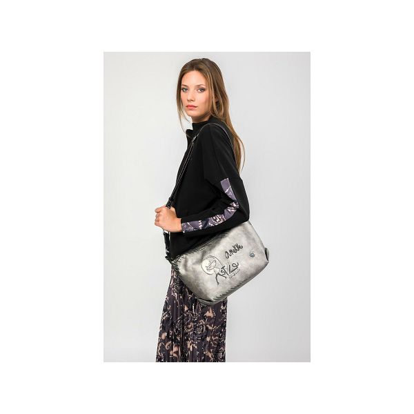 Prednja strana ove elegantne torbe preko ramena izrađena je od umjetne kože s autentičnom teksturom. Tamnosrebrna metalik završna obrada čini je zaista privlačnom za poglede. Neobično minimalistička, torba ima samo izvezeni obris Anekkesinog portreta i logotip brenda. Jer u modi je manje ponekad više.