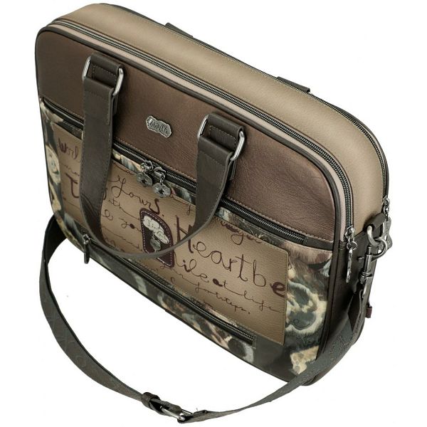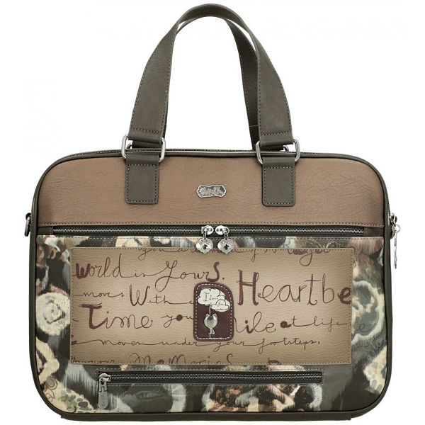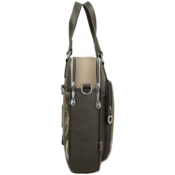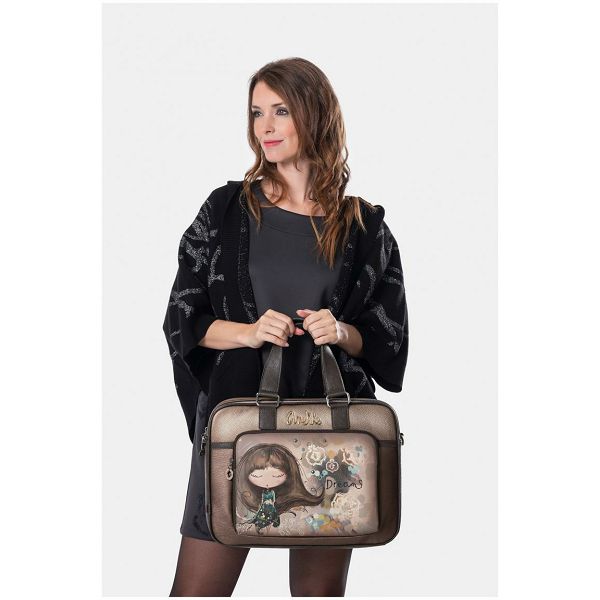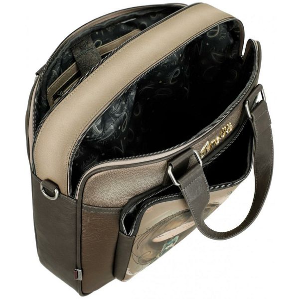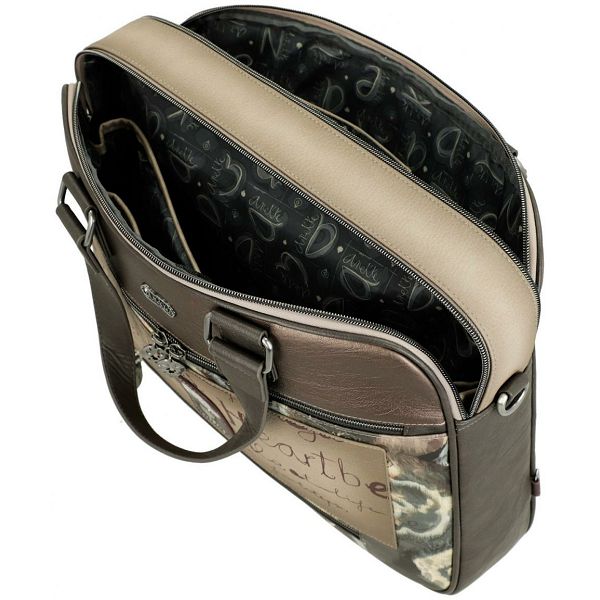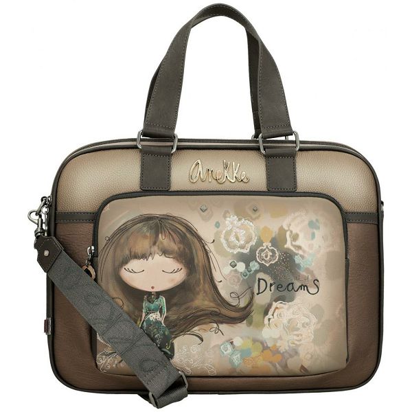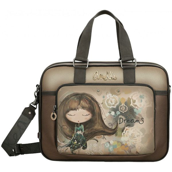 Prednja strana ove ženske poslovne torbe krasi prepoznatljivi otisak sanjive Anekke na višebojnoj pozadini. Blistavi cirkoni naglašavaju uzorkovanu haljinu. Apstraktni oblici u pozadini naglašeni su nježnim vezom. Upečatljiv logotip marke u zlatnom metalu s ugrađenim svjetlucavim kamenčićima savršeno se slaže s jesenskom shemom boja torbice.