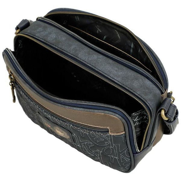 Dva glavna pretinca torbe preko ramena zatvaraju se patentnim zatvaračem. Unutrašnjost torbe podstavljena je odgovarajućom tkaninom.