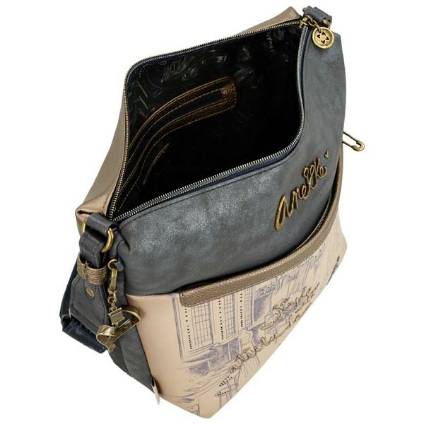 Unutrašnjost torbe preko tijela impresionira tamnoplavom tekstilnom podstavom koja savršeno nadopunjuje dizajn. Odvojivi privjesak brenda u obliku srca je mjerna traka – šarmantan detalj koji odražava Anekkeinu ljubav prema izradi. Mali metalni elementi poput škara, gumba i slično upotpunjuju kreativni cjelokupni koncept.
