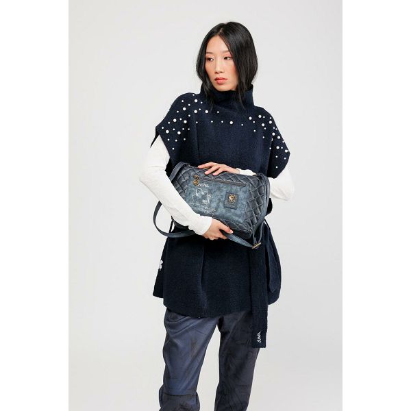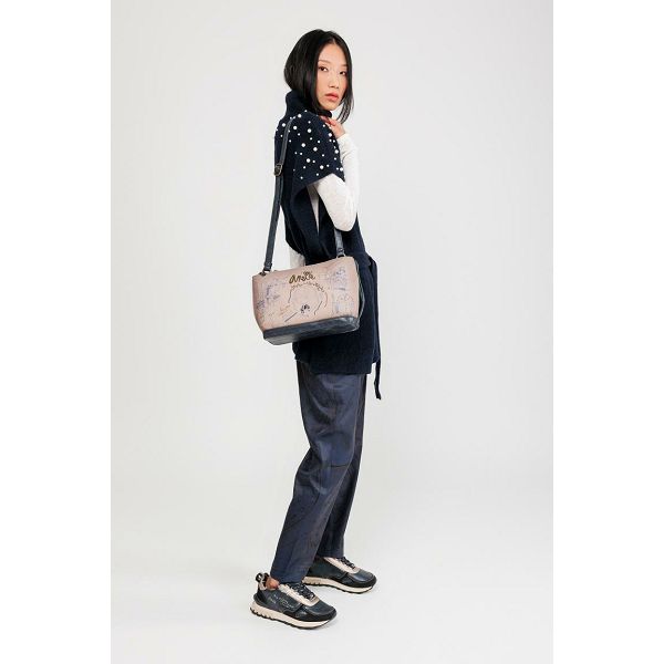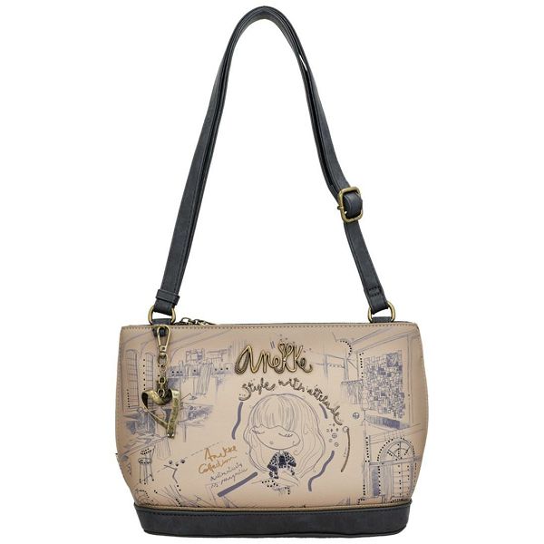 Ova ženska torba impresionira svojim nježnim taupe i plavim tonovima, koje je nevjerojatno lako kombinirati. Elegantne skice na prednjoj strani posebno su upečatljive. Izgledaju kao da su nacrtane olovkom, ostavljajući dojam prave dizajnerske bilježnice. Sama Anekke zauzima središnje mjesto, istaknuta svjetlucavim sjajem.