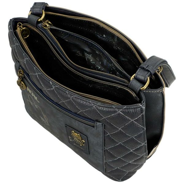 Unutra ćete pronaći tamnoplavu tekstilnu podstavu s odgovarajućim studijskim printom, koja stilski naglašava umjetnički karakter torbe preko ramena.