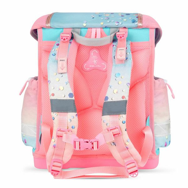 Sigurnost - S Belmil školskom torbom sigurnost je zajamčena čak kada padne mrak: pažljivo postavljene reflektirajuće trake sa svih strana, čvrsta i metalna kopča s reflektirajućom značajkom osiguravaju dobru vidljivost noću.