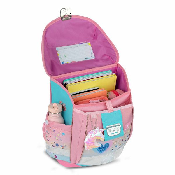 "Classy" je klasični model u najširem izboru dizajna za djevojčice i dječake. Lagana, ali izdržljiva i jaka torba izrađena od kvalitetnih, čvrstih i vodootpornih materijala. Ojačanje sa svih strana i snažno dno torbe povećava stabilnost i izdržljivost. Donji dio ima i dodatne funkcije: osigurava da torba ostane u istom položaju, sprječava prljanje i održava sadržaj suhim čak i po kišnom vremenu.