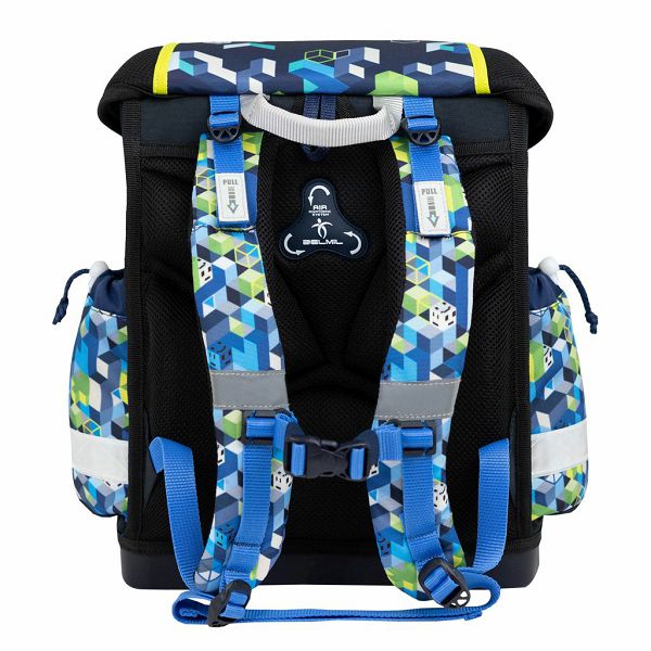 S Belmil školskom torbom sigurnost je zajamčena čak kada padne mrak: pažljivo postavljene reflektirajuće trake sa svih strana, čvrsta i metalna kopča s reflektirajućom značajkom osiguravaju dobru vidljivost noću.