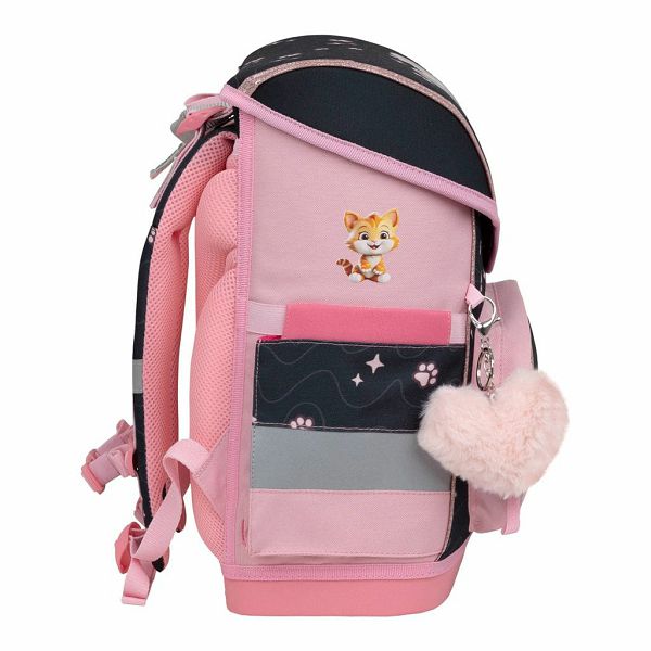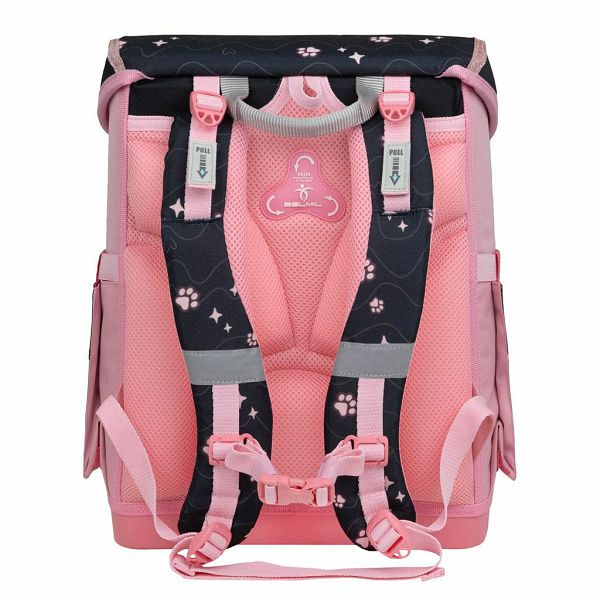 Sadrži pametno podijeljene unutarnje odjeljke koji djeci pomažu organizirati školski pribor. Postoje tri odvojena odjeljka namijenjena za pohranu udžbenika i bilježnica svih veličina. Dva manja džepa i džep s patentnim zatvaračem pružaju dodatnu pohranu za mobilni telefon i manje predmete, poput karata i ključeva. Gornji poklopac ima držač rasporeda. Prednji džep namijenjen je za pohranu pernice ili kutije za ručak. Bočni džepovi s elastičnim trakama za smještaj boce vode (do 0,7 L) i kišobrana.