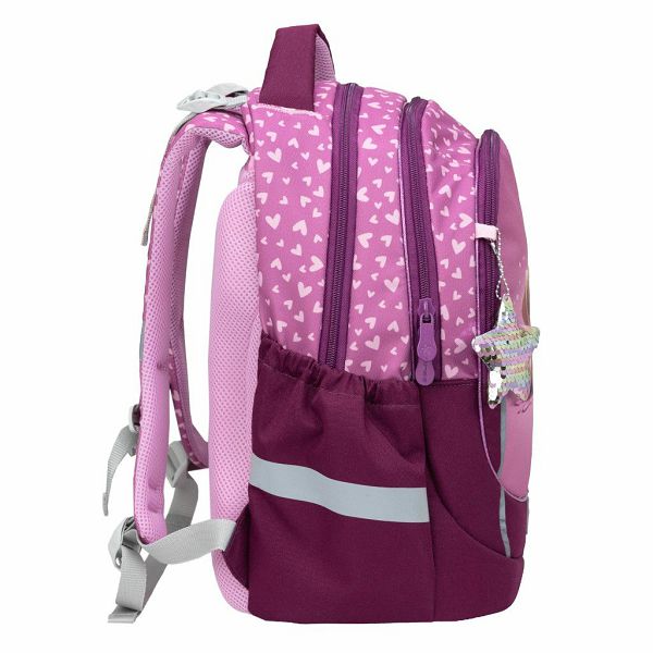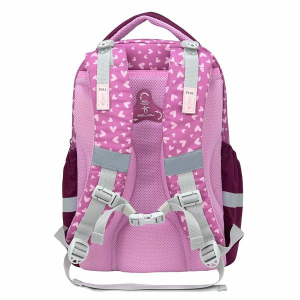 Ergonomski oblik i prozračna podstava - Ovo osigurava da je pritisak na dječja leđa minimalan. Naramenice su dobro podstavljene i podesive, tako da je zajamčeno udobno svakodnevno nošenje. Dodani prsni remen osigurava optimalnu raspodjelu opterećenja.