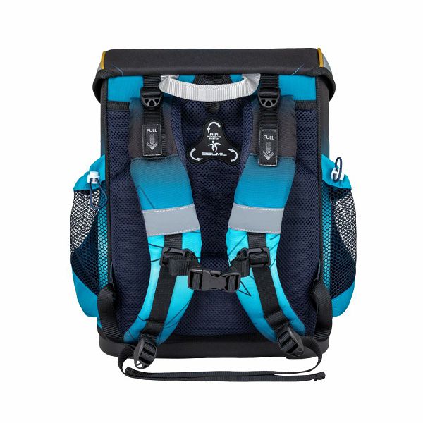 S Belmil školskom torbom sigurnost je zajamčena čak i kada padne mrak: pažljivo postavljene reflektirajuće trake sa svih strana, čvrsta i metalna kopča s reflektirajućom značajkom osiguravaju dobru vidljivost noću.