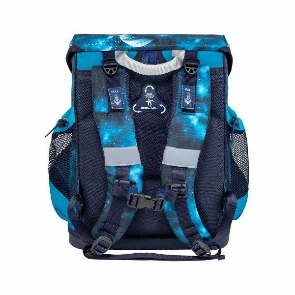 S Belmil školskom torbom sigurnost je zajamčena čak i kada padne mrak: pažljivo postavljene reflektirajuće trake sa svih strana, čvrsta i metalna kopča s reflektirajućom značajkom osiguravaju dobru vidljivost noću.