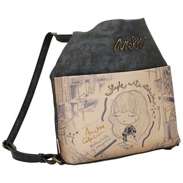 Ruksak očarava svojom svjetlucavom plavom nijansom, u kombinaciji s toplom taupe bojom i nježnim printom koji nalikuje ručno crtanoj skici olovkom. Kao da sama Anekke radi na novom remek-djelu.
